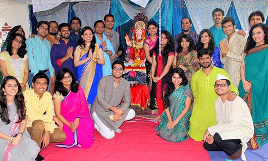 Mumbaikars celebrate the festival of ganesh Utsav with enormous enthusiasm and devotion. And so does SIMSR. As per the tradition, the student council installs the idol of lord Ganesha for a period of three days. All the rituals are followed including the morning and evening aartis, prasad, and modaks. The lord of fortune is worshipped by all the students and faculties together. At the end of third day, the idol is immersed in water with the tradition dhol and gulal.