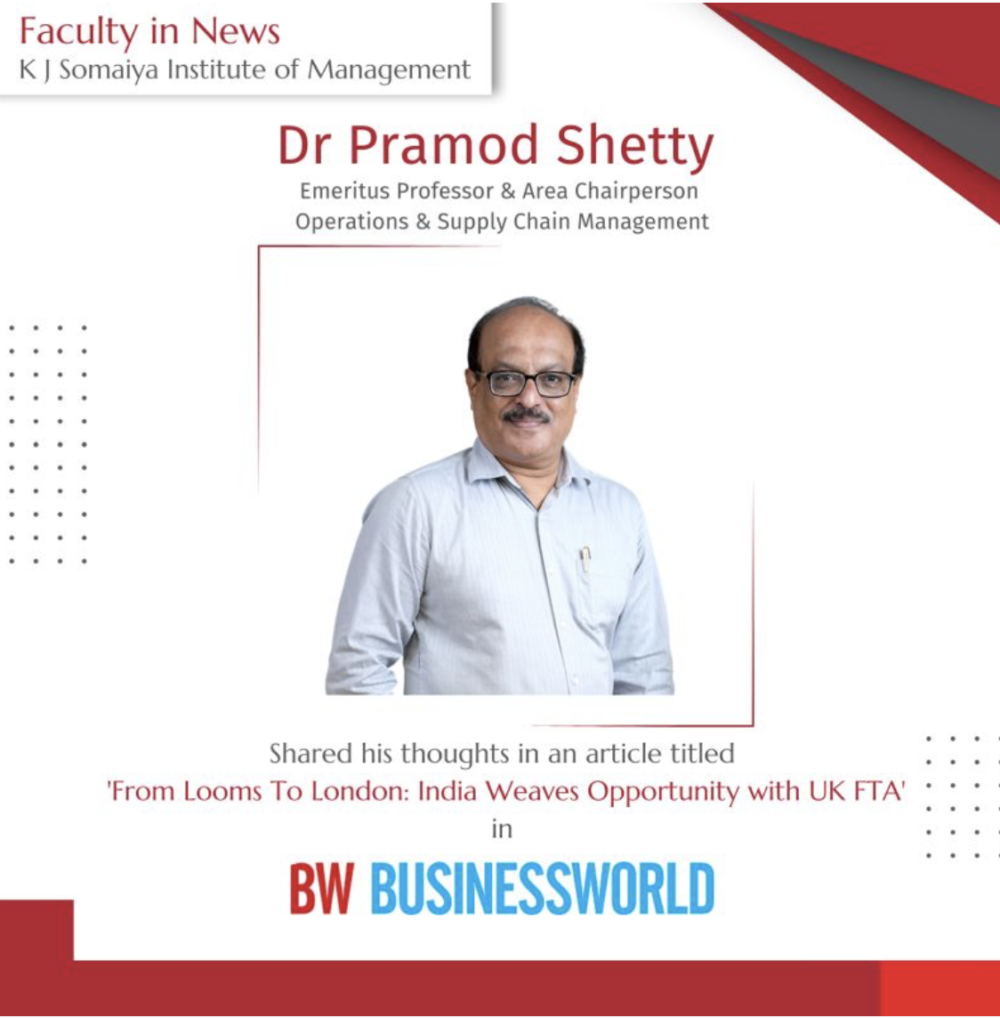 Dr Pramod Shetty, Emeritus Professor & Area Chairperson, Operations, K J Somaiya Institute of Management, shared his perspectives in BW Businessworld on how FTAs can serve as strategic tools for long-term economic transformation.