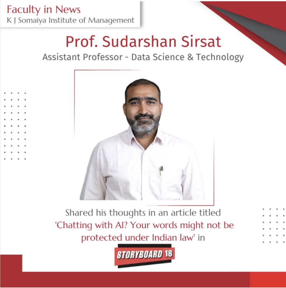 Prof. Sudarshan Sirsat, Assistant Professor - Data Science and Technology, K J Somaiya Institute of Management, sheds light on why your conversations with AI might not be legally protected in India.