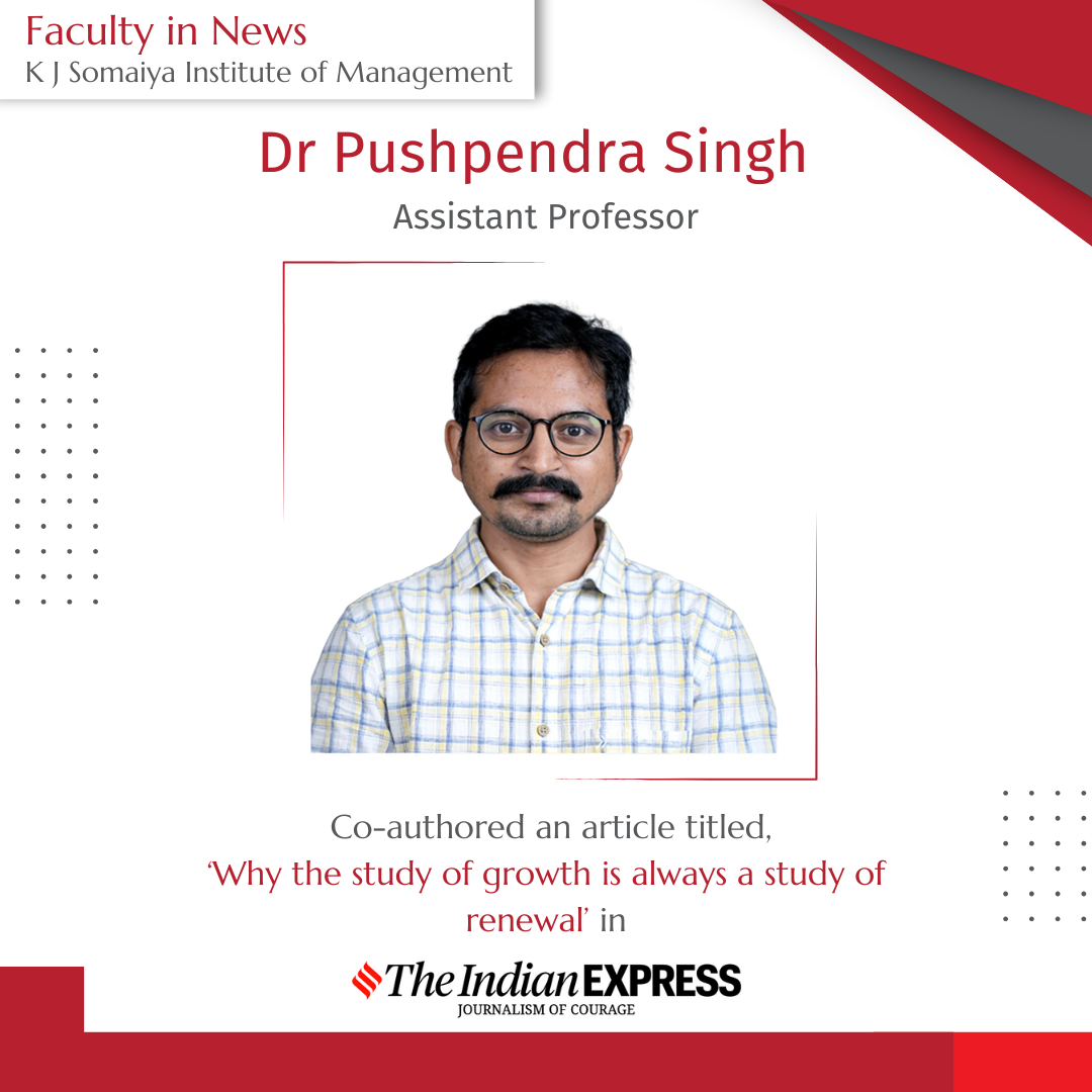 Prof. Pushpendra Singh, Assistant Professor - Economics, K J Somaiya Institute of Management, shared his insights in The Indian Express (UPSC Essentials) in an article titled ‘Why the study of growth is always a study of renewal’. In the piece, Prof. Singh adds an economist’s lens to the discussion, connecting renewal to capability building and institutional learning. He highlights how the movement of ideas across borders, the diffusion of technology, and the reallocation of resources act as critical engines that refresh productivity and sustain long-term growth.