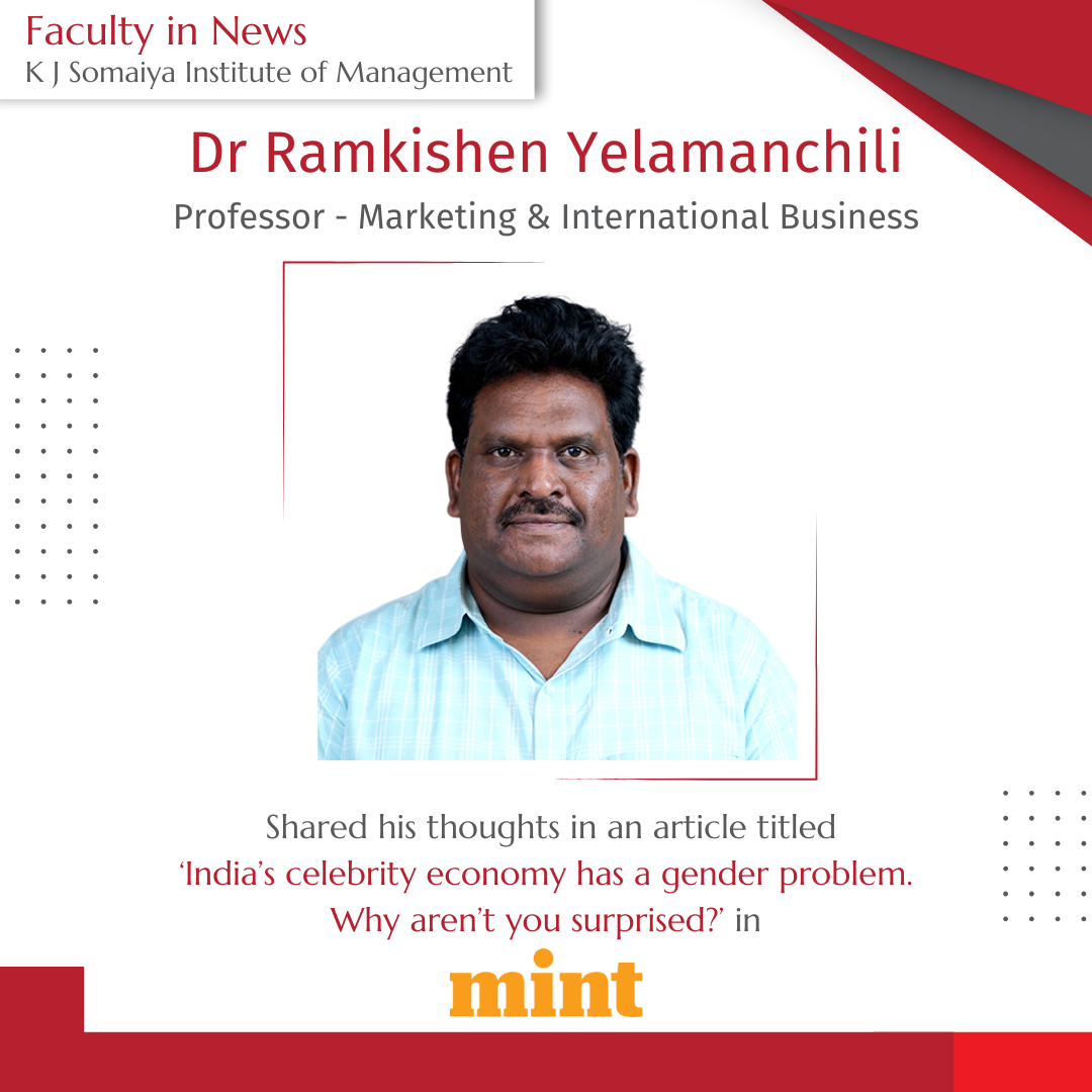Dr. Ramki Y, Professor - Marketing and International Business, KJ Somaiya Institute of Management, shared his perspective with Mint Lounge on the dominance of male celebrities in brand endorsements across India’s entertainment and sports landscape. In the feature, he explains that India’s enduring fascination with Bollywood and cricket has positioned male actors and cricketers as dominant endorsers due to their extensive fan base and perceived longevity.