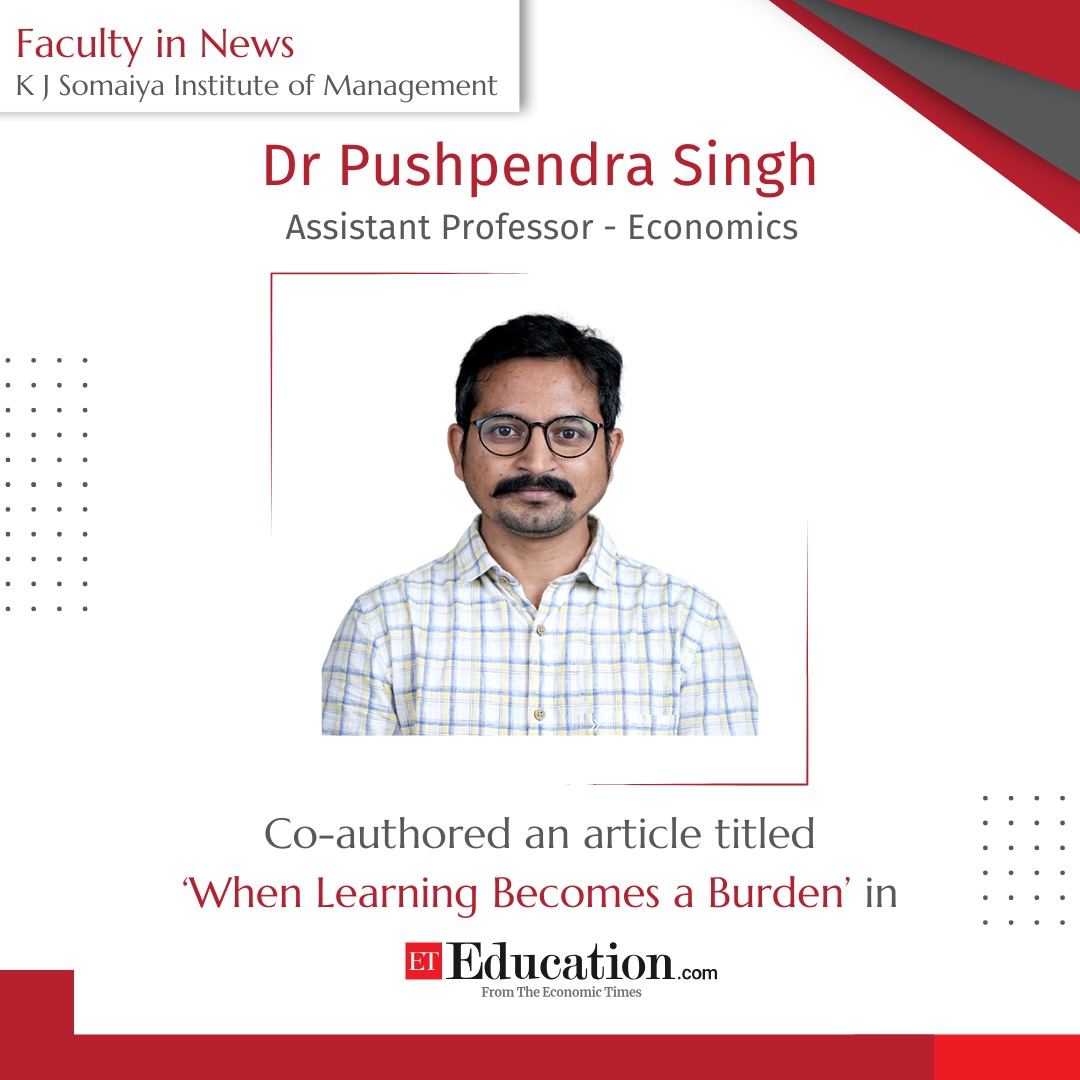 ET Education published an article by Dr Pushpendra Singh, Assistant Professor - Economics, K J Somaiya Institute of Management, titled “When learning becomes a burden,” reflecting on the growing pressures within today’s exam-driven education system.